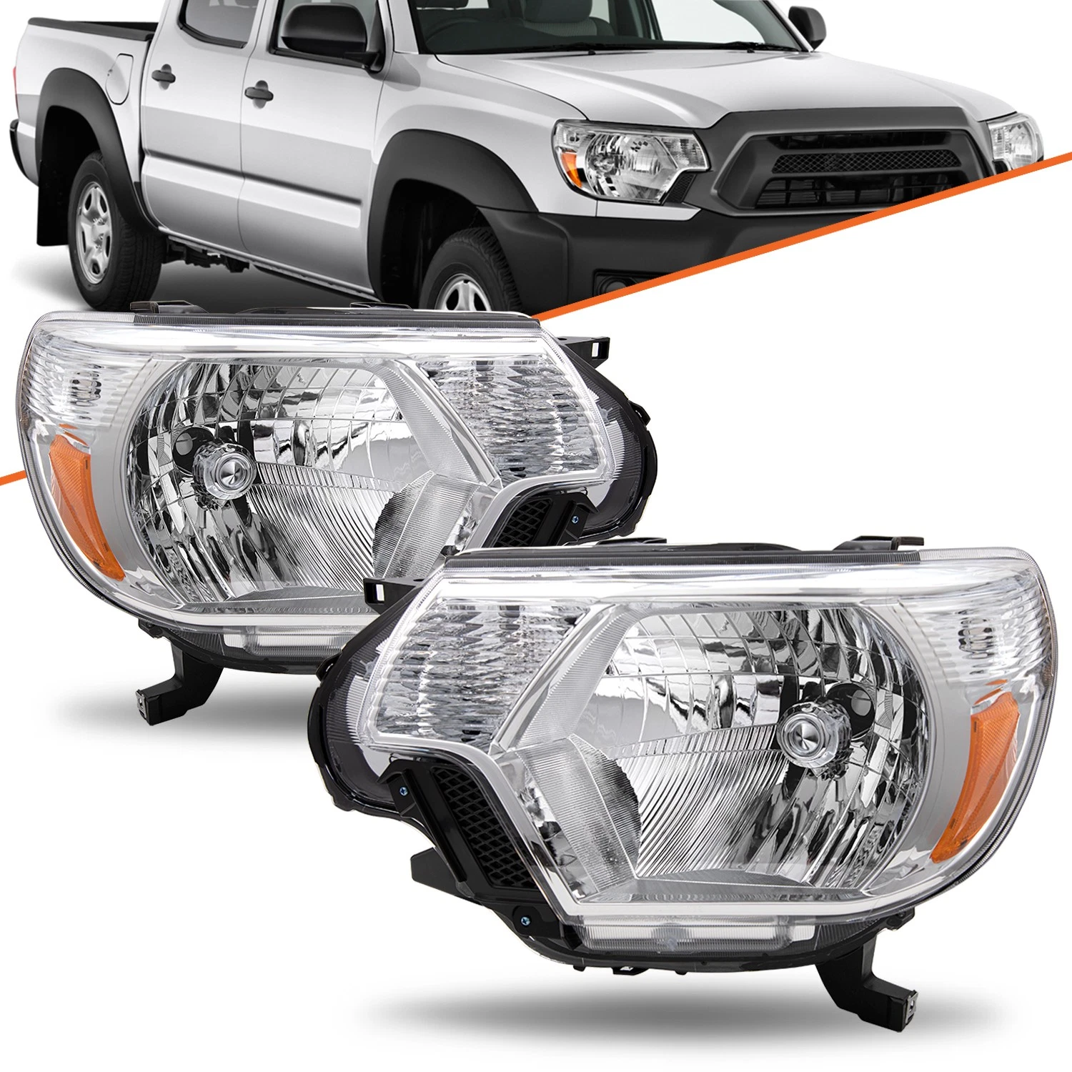 2012-2015 Toyota Tacoma Pickup Chrome Headlights Amber Corner Headlamps Pair