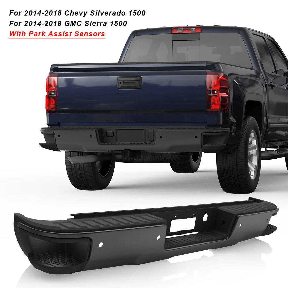 Black Rear Bumper w/ Sensor Hole For 2014-2018 Chevy Silverado GMC Sierra 1500