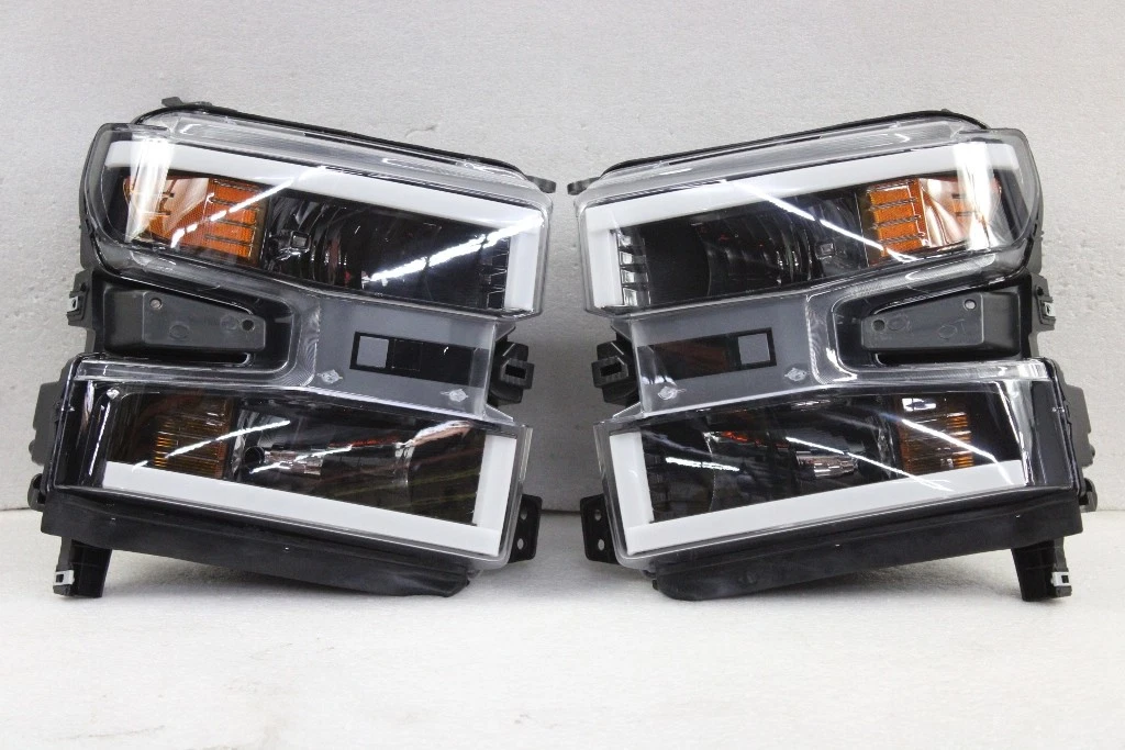 FITS 19-21 Silverado 1500 Halogen w/LED DRL SwitchBack Signal BLK Headlights