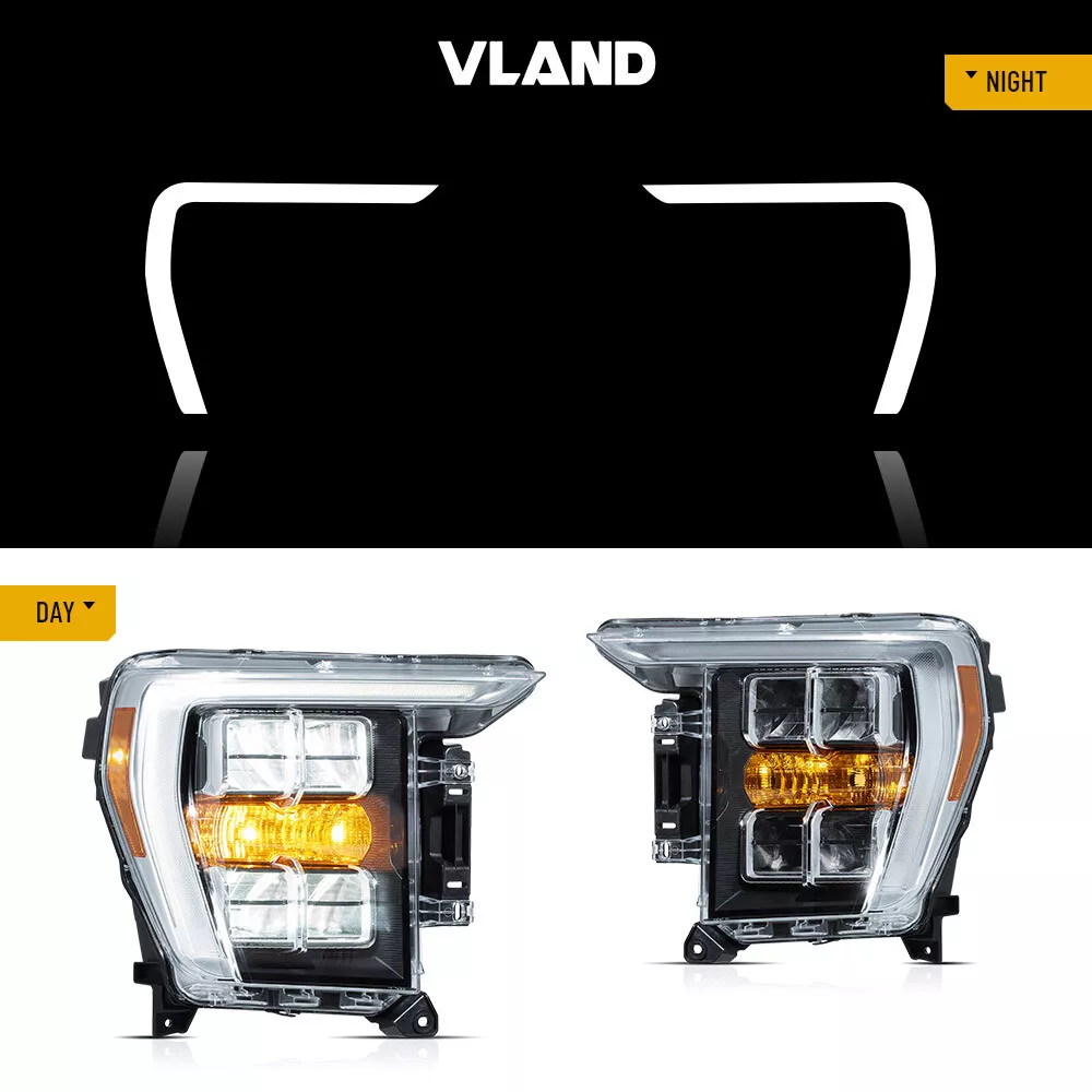 LED Reflector Headlights For 2021 2022 2023 Ford F150 F-150 Headlamps Pair