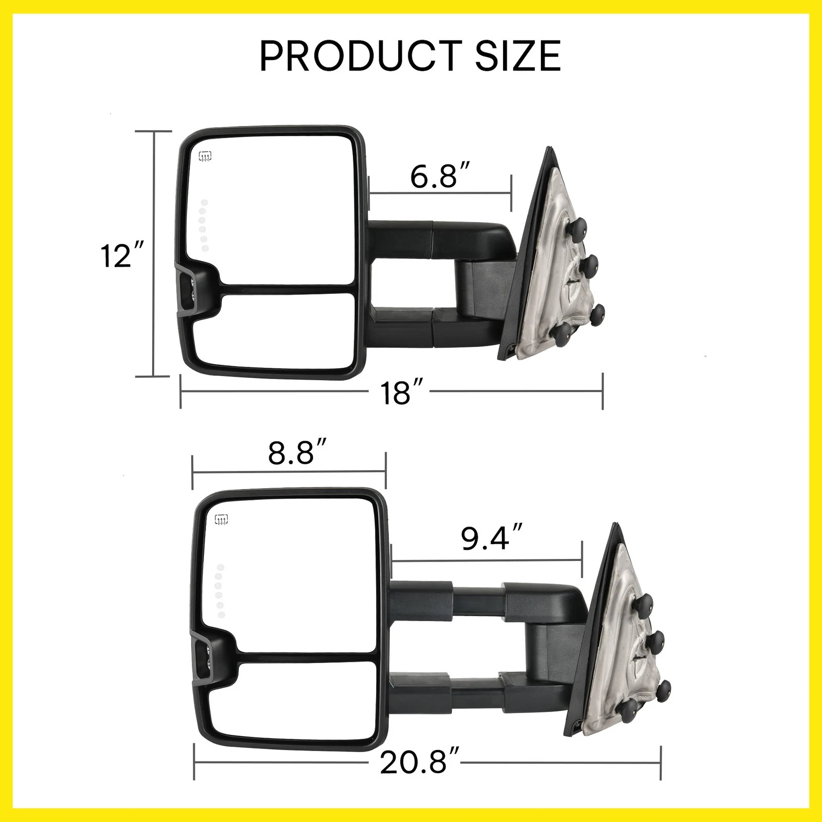 L+R Power Heated Tow Mirrors for 2014- 2018 Silverado Sierra 1500 w/ LED Signal