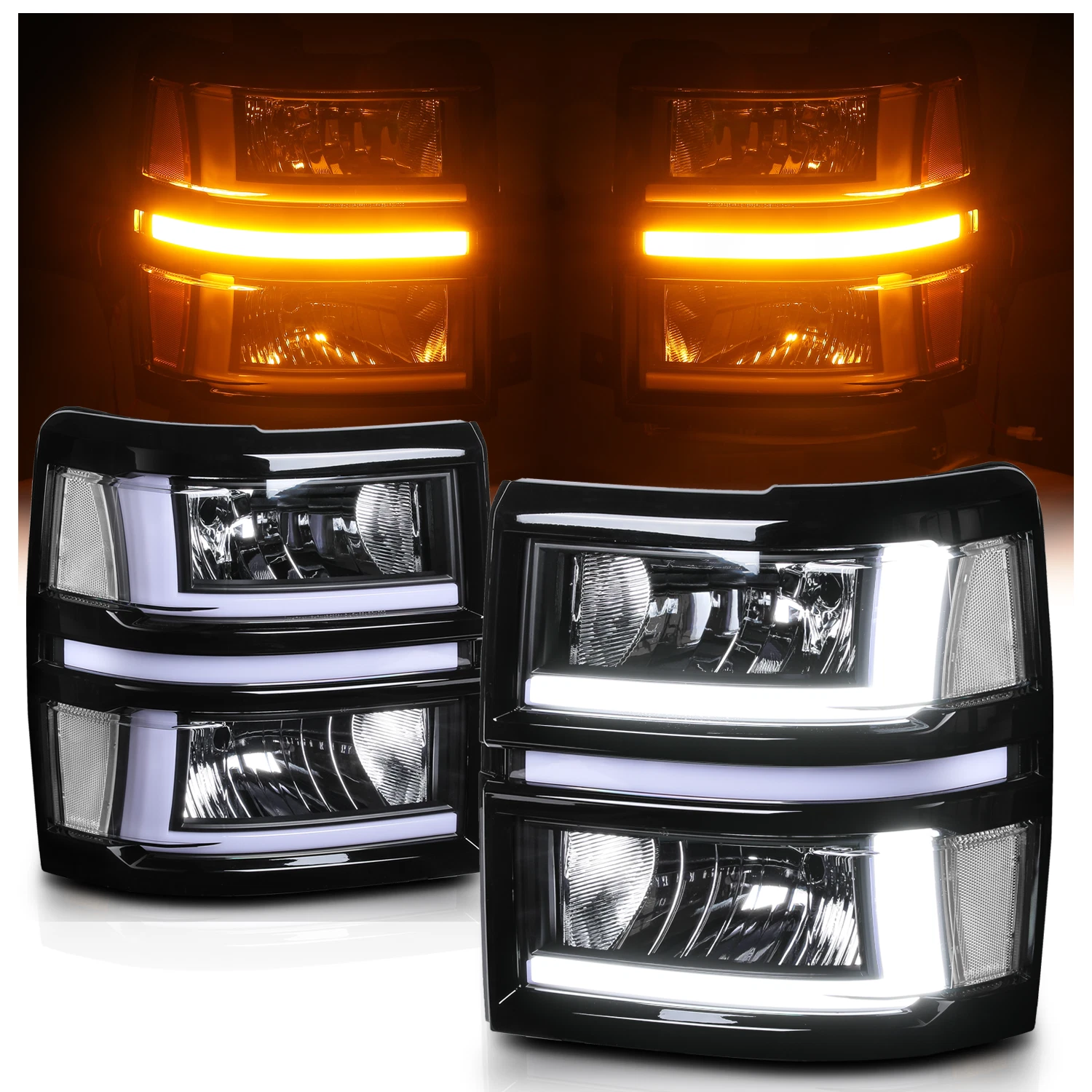 L+R [TURN SIGNAL+LED RUNNING LIGHT BAR] Headlight for 14-15 Chevy Silverado 1500